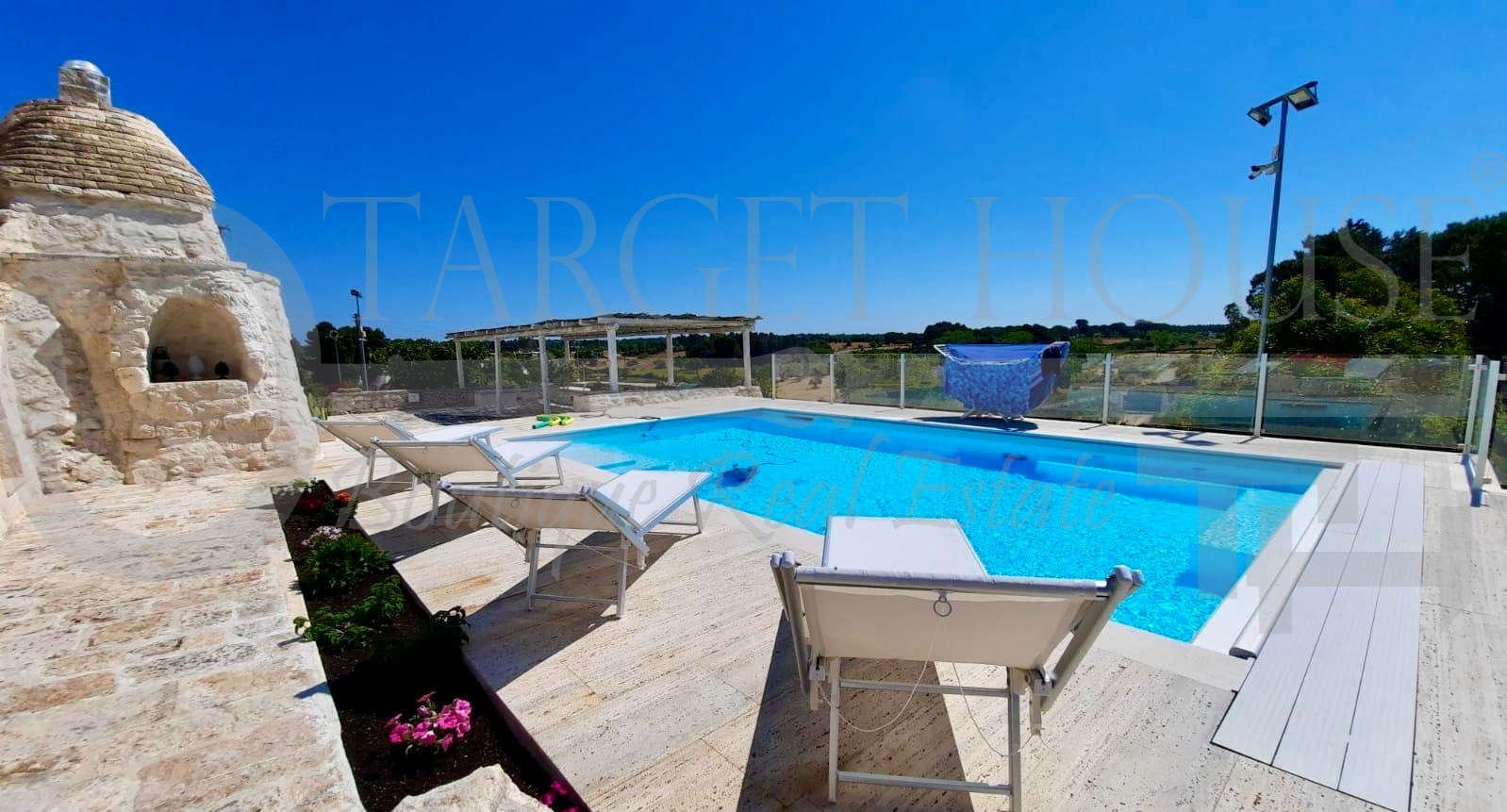 In the famous and spectacular Martina Franca, in a unique setting of the Itria Valley, we offer a prestigious Trullo, completely and tastefully renovated and furnished, with a large outdoor area and a large swimming pool. The property comprises a spacious living room, a typical fully equipped kitchenette, a double bedroom, a bathroom with a splendid shower, an additional bathroom with a comfortable bathtub and also a shower, and a second bedroom. The property can be used as a traditional and comfortable residence, but above all, as a magnificent and luxurious guesthouse. Rare pieces of this workmanship and maintenance. This property is definitely worth saving in your favorites! For more information and/or to schedule a viewing, call 031 3384941 or email info@targethouse.it. The listings on the site are for informational and advertising purposes only. All information contained therein (for example, price, location, property square footage, etc.) is purely indicative and does not constitute a binding contract offer.