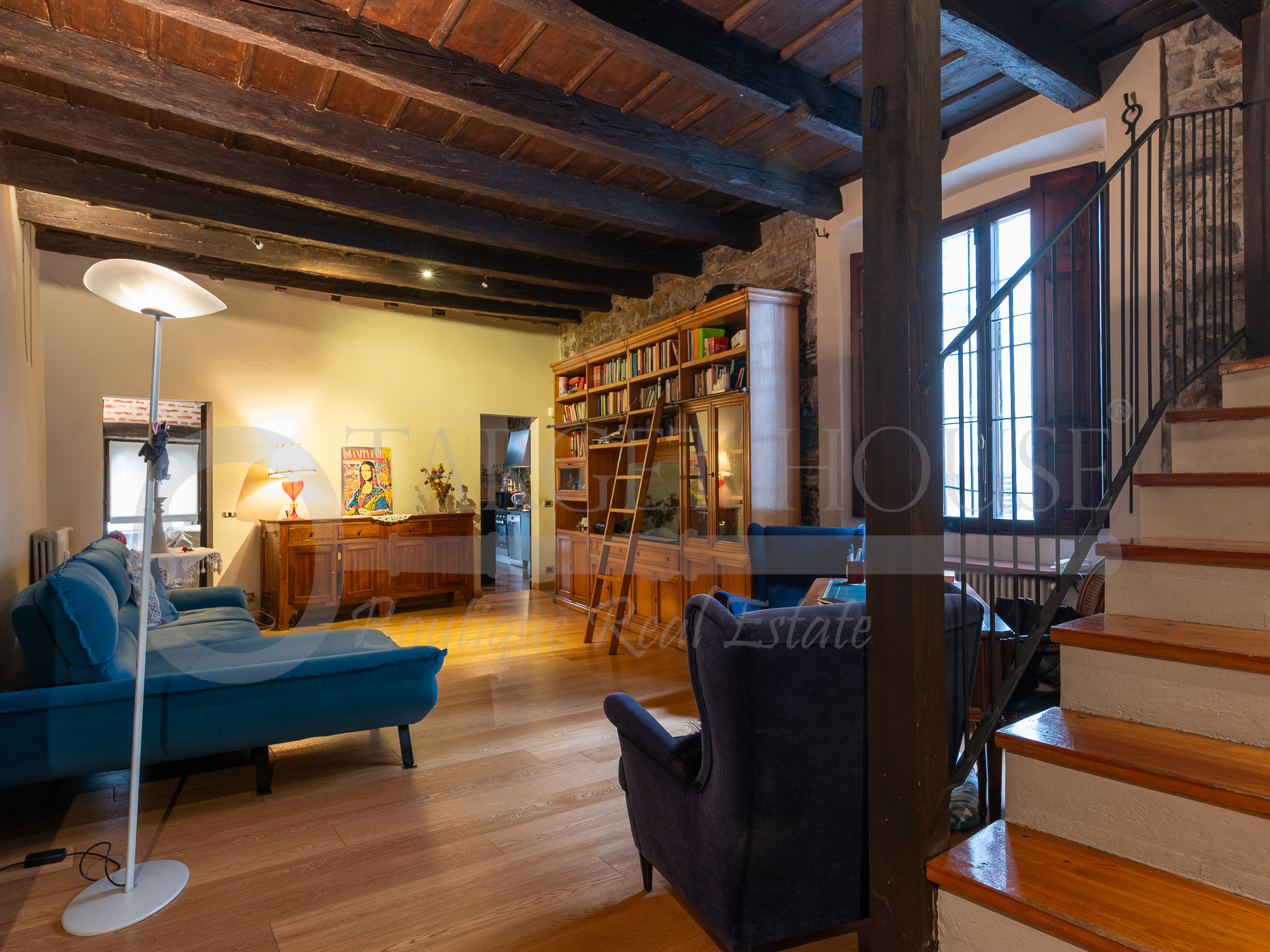 In the splendid walled city of Como, on one of the city's most iconic streets, we offer a prestigious apartment of almost 180 square meters in one of Como's three oldest buildings. The residence is extremely well-maintained, boasting high ceilings and period features. The entire property revolves around a splendid courtyard, boasting incredible historical appeal. A magnificent staircase leads to the loggia that houses the entrance to the residence. Inside, the living room features coffered ceilings, exposed beams, and a grand fireplace. A staircase leads to the sleeping level, where two bedrooms and a bathroom are located. Parquet planks; beams, original stone, tiles, and friezes in the courtyard characterize the entire property. For more information and/or to schedule a viewing, please call +39 031 3384941 or email info@targethouse.it. The listings on the site are for informational and advertising purposes only. All data contained therein (for example, price, location, property size, etc.) are merely indicative and do not constitute a binding contractual proposal.